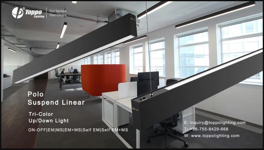 Features: Emitting color: • Suitably efficient - up to 110 LM/W · Tri-Color • Opal cover Installation : • Independent control of Up and Down lighting · Suspension • Contructed by Aluminum for heating dispatching Function: • 4 steps switch for Tri-color option • F1: 1-10V Dimming • Integral driver on the gear tray • F2: 1-10V + 3H EM • 1-10V dimming as standard • F3: ON/OFF + MS • Suspension Installation • F4: ON/OFF + MS + 3H EM • 120cm 36W Down+6W Up, 150cm 50W Down+6W Up • F5: 1-10V + 3H Self EM • Constant up light at 6W/360LM • F6: ON/OFF + MS + 3H Self EM • Case color: Matt White/ Matt Grey/ Matt Black • Warranty: 5 years , EM Battery: 2 years